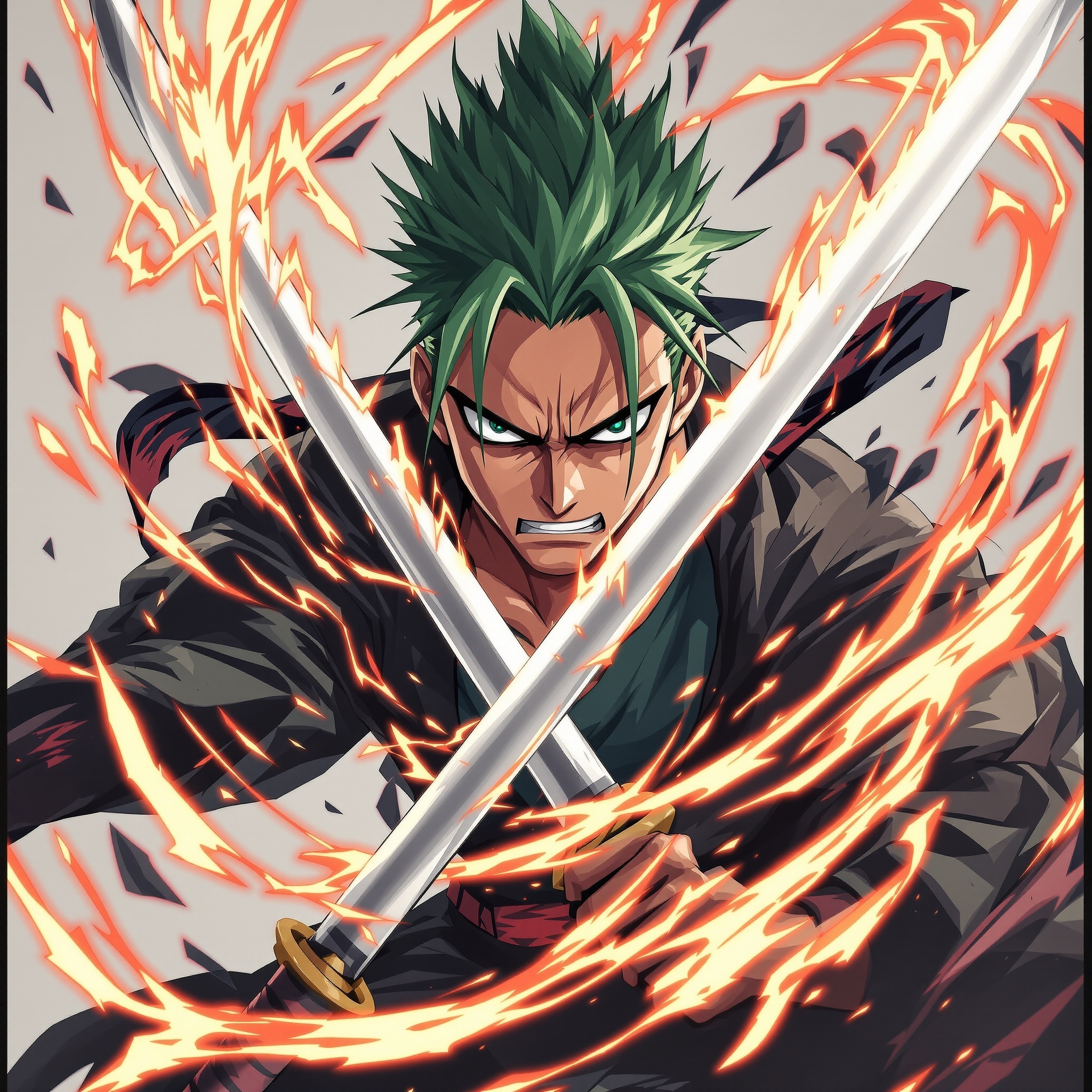 The portrait approach highlights the discipline of a three‑sword master. The character stays centered in the frame, with subtle sword energy and anime lighting to reinforce Zoro’s presence ensuring the PFP works well as a profile picture and anime avatar. Clean background design prevents visual clutter while preserving the spirit of the swordsman.