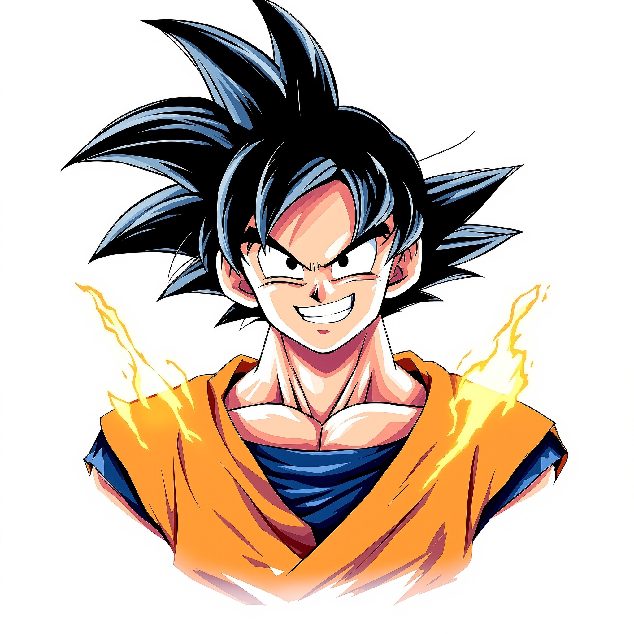 PFP artwork inspired by victory flame energy and a more upbeat expression for Goku. The image is intentionally built to perform as a profile picture, which means the face remains bold, the silhouette stays clear, and the background does not compete with the subject. Warm lighting adds emotional strength to the avatar while preserving visibility at smaller sizes. Because of this, the anime style feels lively without losing practicality. This Goku PFP works well as a profile picture for users who want optimism and action together, and it also stands as a bright, confident avatar.